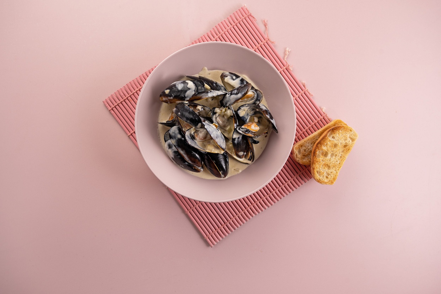 Вес: 330 гр Состав: мидии, сливки, трюфельная паста, чиабатта