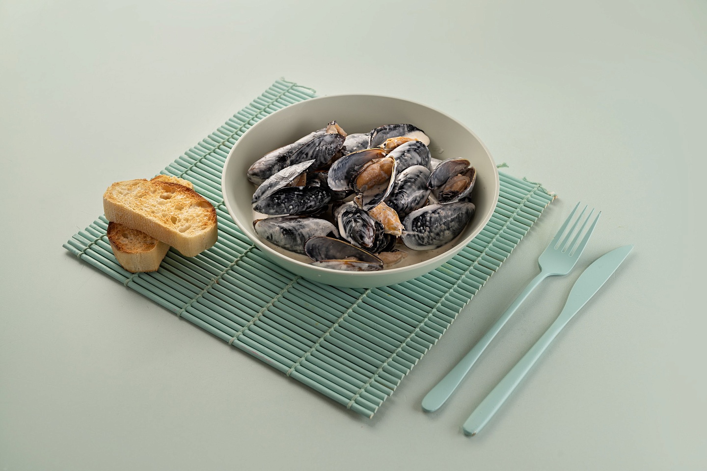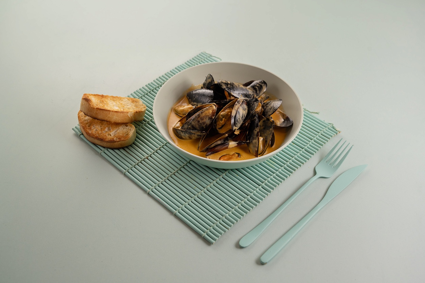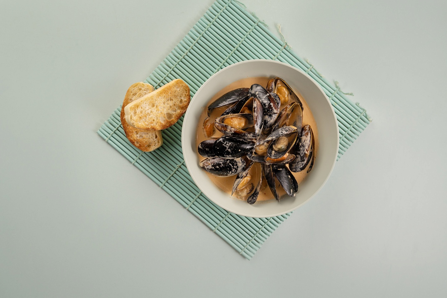 Вес: 330 гр Состав: мидии, сливки, соус том ям, чиабатта