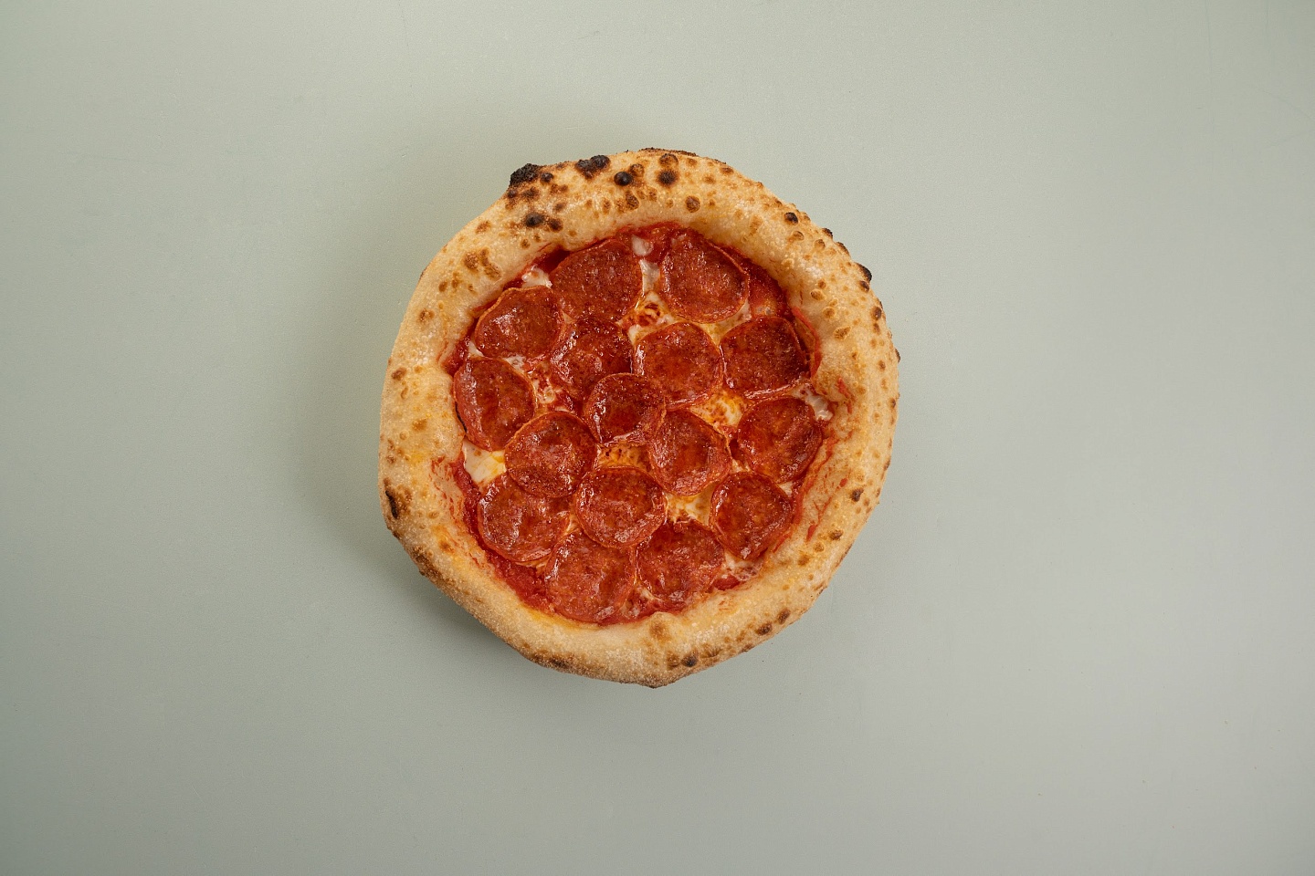 Вес: 300 гр Состав: тесто для пиццы, томатный соус, пепперони, моцарелла