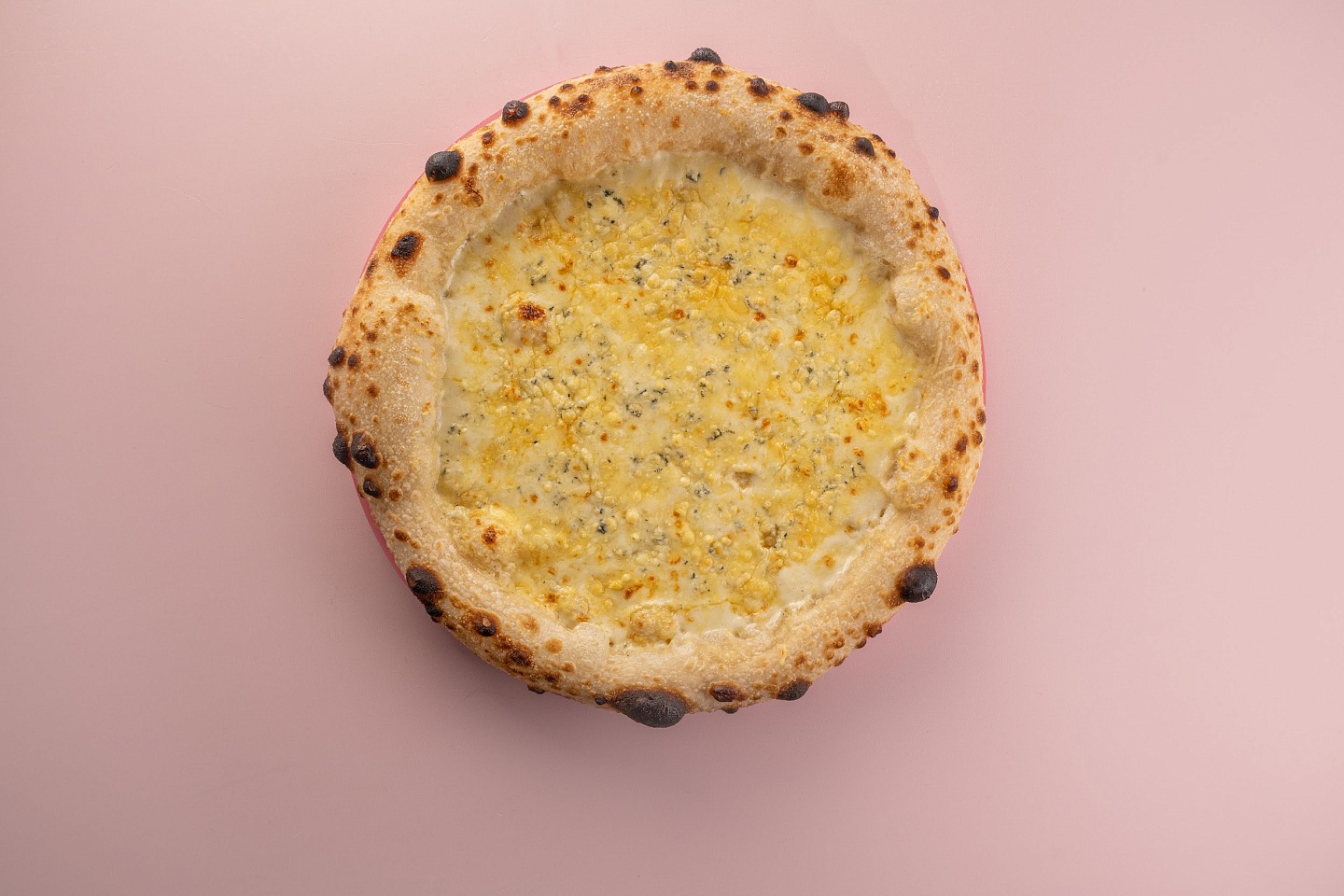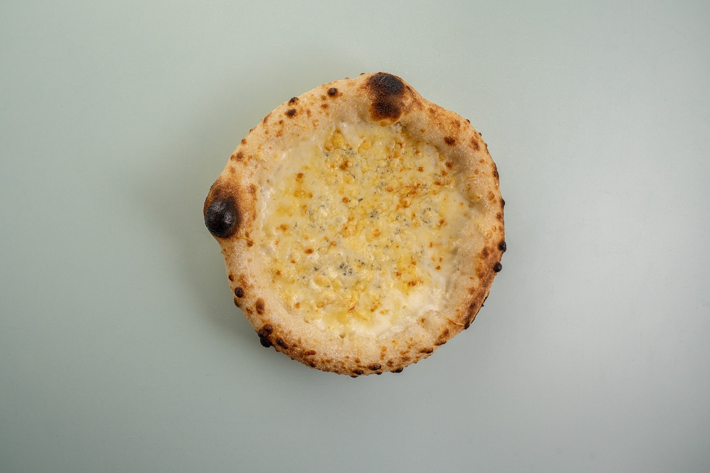 Вес: 330 гр Состав: тесто для пиццы, сливочный соус, моцарелла, маасдам, дорблю, пармезан