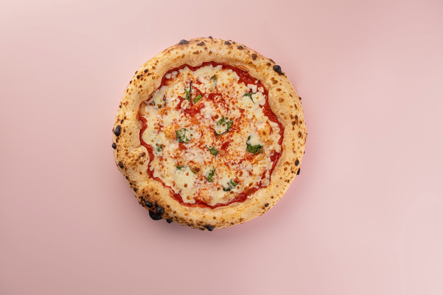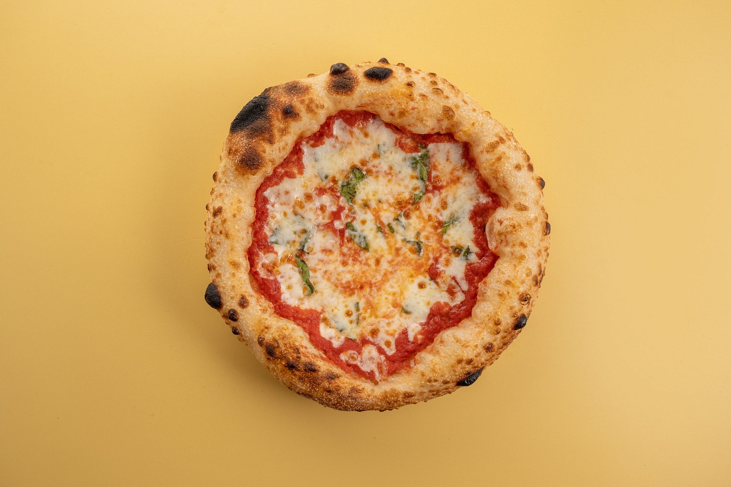 Вес: 400 гр Состав: тесто для пиццы, томатный соус, моцарелла, базилик